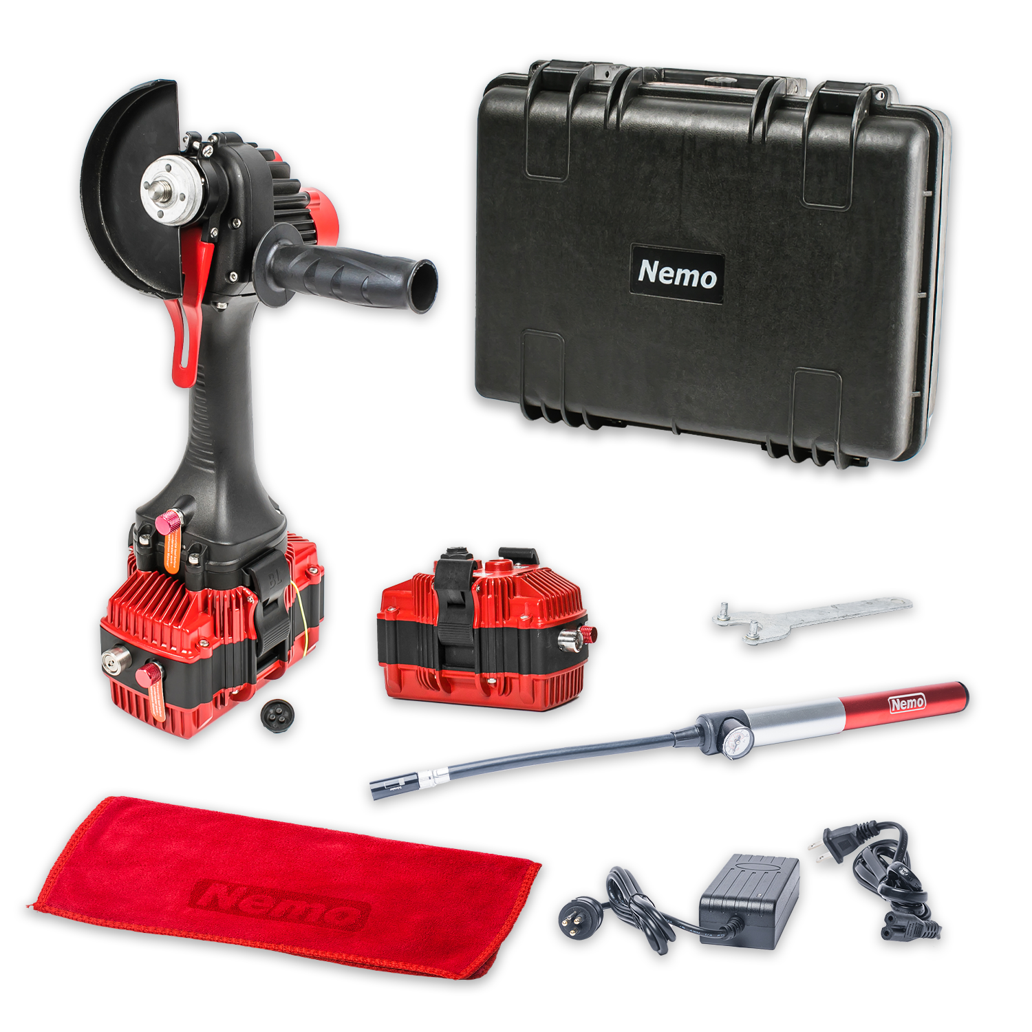 The Nemo Submersible Angle Grinder was developed due to the growing demand for an electric submersible power tool for underwater cutting, grinding, and polishing. It is the world’s first and only waterproof electric grinder, and rated to a maximum operating depth of 50m (164ft). Its 1500-watt brushless technology, adopted from the UAV industry, ensures maximum efficiency and durability.